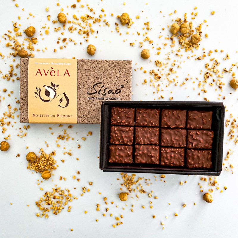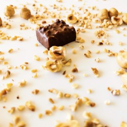 Découvrez le subtil équilibre de la crème de noisettes du Piémont et de notre chocolat au lait 42 % origine Madagascar, renforcé par des éclats de noisettes torréfiés. Onctueux en bouche avec une pointe de croquant, laissez les noisettes envoûter votre palais.
