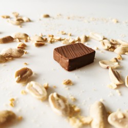 Découvrez le subtil mélange de la crème de cacahuètes torréfiées et de notre chocolat au lait 42 % origine Madagascar, additionné d’une pincée de sel de l’Himalaya. Onctueux en bouche avec une pointe de croquant, laissez les cacahuètes envoûter votre palais.