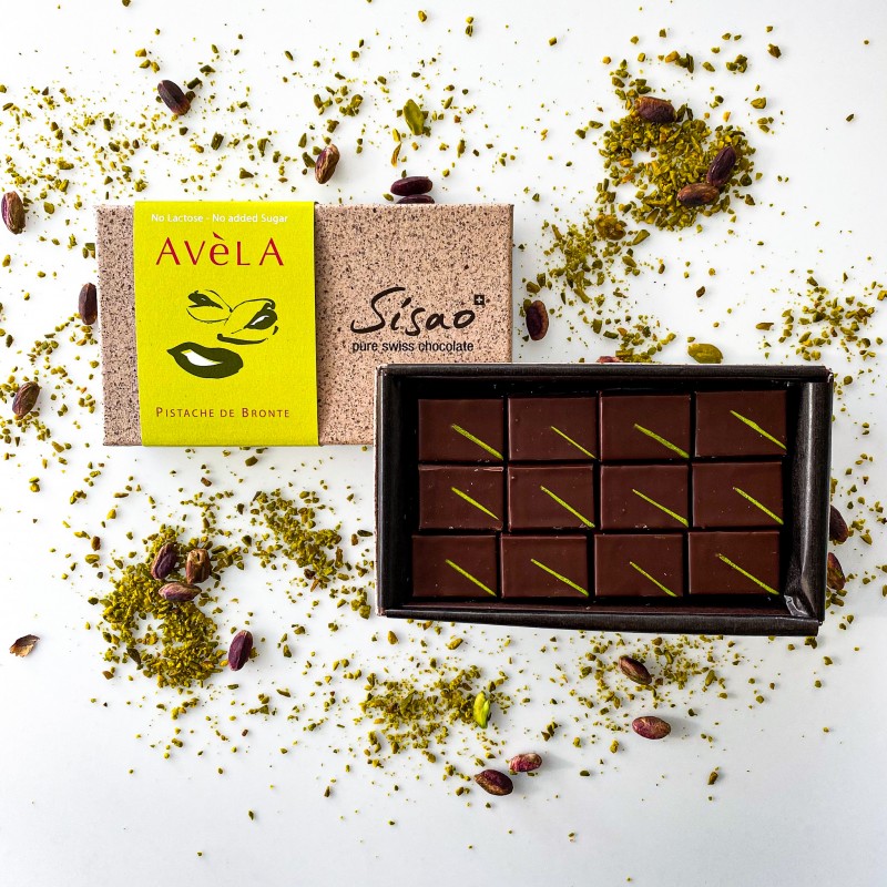 Découvrez le subtil mélange de la crème de pistaches de Bronte et de notre chocolat blanc 36 %. Dès la première bouchée, la rondeur du chocolat blanc, contrastée par notre chocolat noir, met en avant le délicieux goût de la pistache.
